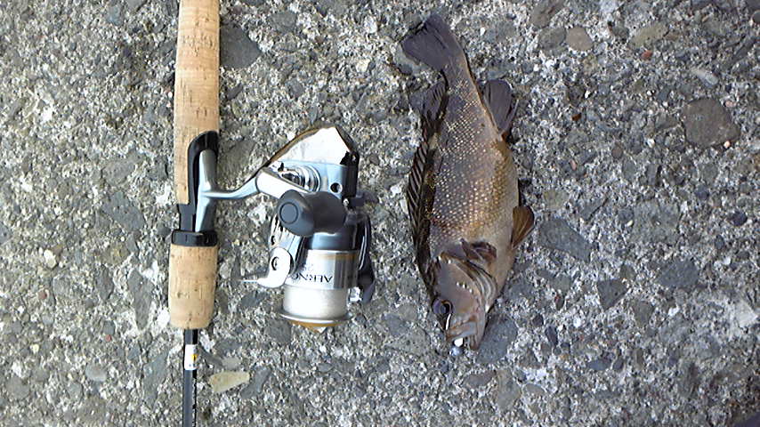 ロッドがいい感じにしなり、上がってきたのは・・・