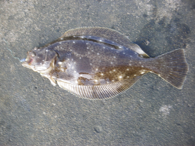 ・・・腹ビレ手前にしたら左向いていて・・・でもヒレに黒色がないのでカワガレイじゃない・・・
